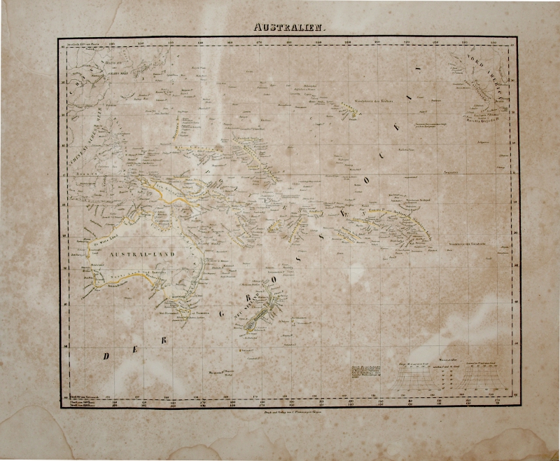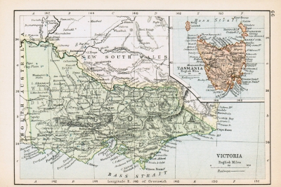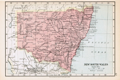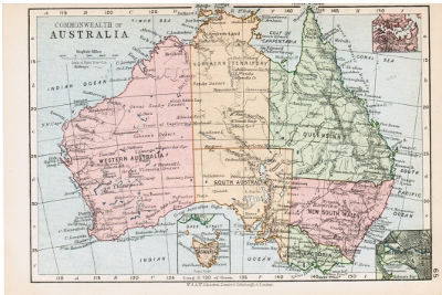 Description: Shows the progress of early discoveries and state borders. Prominent are the great white swathes of unexplored lands in Australia.
